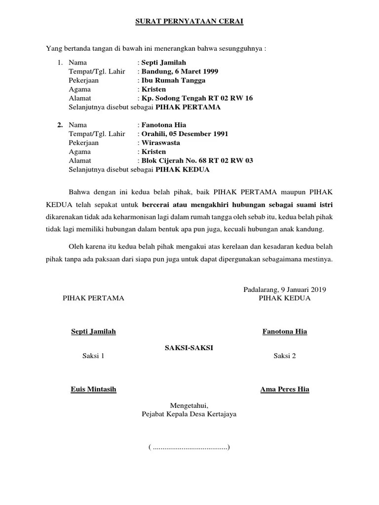 Contoh Surat Perjanjian Cerai : Tag Contoh Surat Pernyataan Cerai Pdf Kumpulan Contoh Surat Dan Soal Terlengkap - Maybe you would like to learn more about one of these?. Maybe you would like to learn more about one of these? We did not find results for: Check spelling or type a new query.